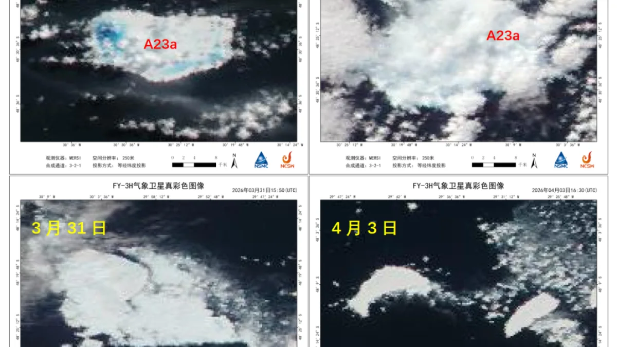 চীনের ফংইয়ুন আবহাওয়া স্যাটেলাইট বহর দীর্ঘ সময় ধরে হিমশৈলটির গতি এবং ভেঙে যাওয়ার পুরো প্রক্রিয়া পর্যবেক্ষণ করেছে।