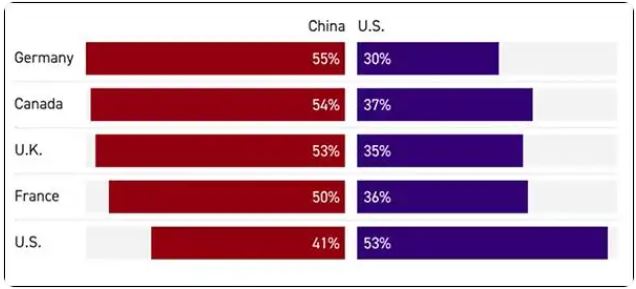 কানাডা এবং জার্মানির অধিকাংশ উত্তরদাতা মনে করেন, যুক্তরাষ্ট্রের ওপর নির্ভর করা কঠিন হয়ে পড়ায় তারা চীনের কাছাকাছি আসছেন। ফ্রান্স এবং ব্রিটেনের অনেক অংশগ্রহণকারীও একই মত পোষণ করেছেন। তাদের মতে, ট্রাম্পের "আমেরিকা ফার্স্ট" নীতির অধীনে যুক্তরাষ্ট্র অতীতের "নিয়মতান্ত্রিক আন্তর্জাতিক ব্যবস্থা"কে উল্টে দিয়ে বিশ্ব মঞ্চে একঘরে বা বিচ্ছিন্ন হয়ে পড়েছে।