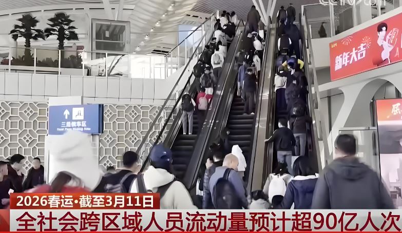 央视网消息:记者从交通运输部了解到,截至3月11日,2026年春运以来预计全社会跨区域人员流动量超90亿人次。