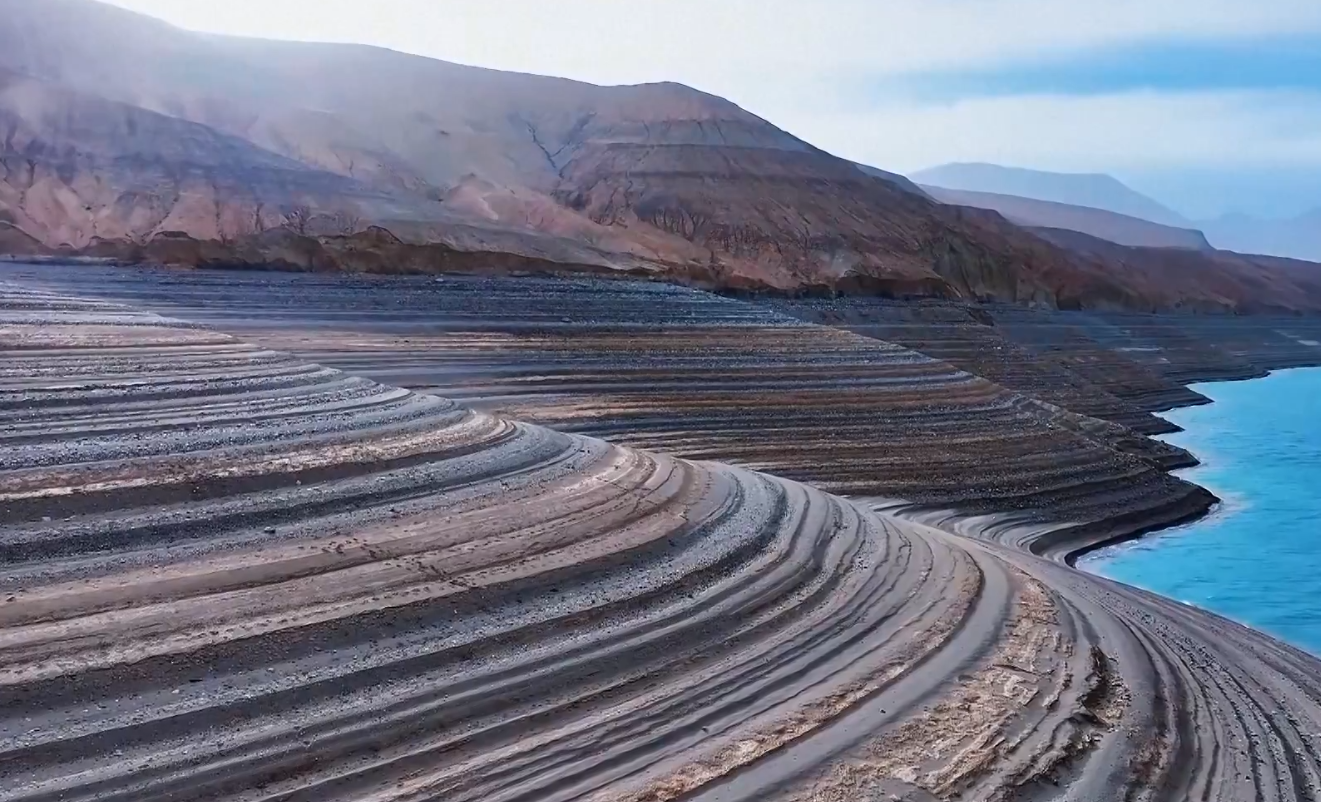 হ্রদের চারপাশে তৈরি হওয়া এই স্তরগুলো বিশাল সিঁড়ির মতো ধাপে ধাপে উঠে গেছে, যা পুরো দৃশ্যকে আরও রহস্যময় ও ভিন্নগ্রহের মতো করে তুলেছে।