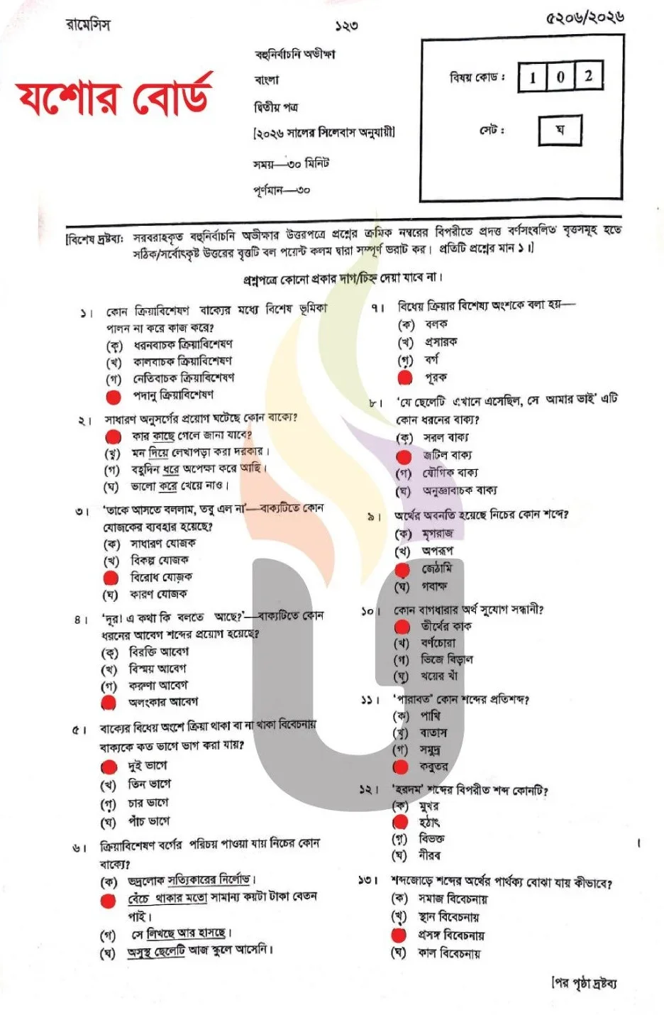 - যশোর বোর্ড এসএসসি বাংলা ২য় পত্র MCQ প্রশ্ন সমাধান ২০২৬