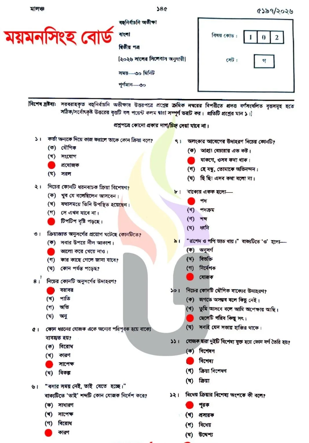 ময়মনসিংহ বোর্ড এসএসসি বাংলা ২য় পত্র MCQ প্রশ্ন সমাধান ২০২৬