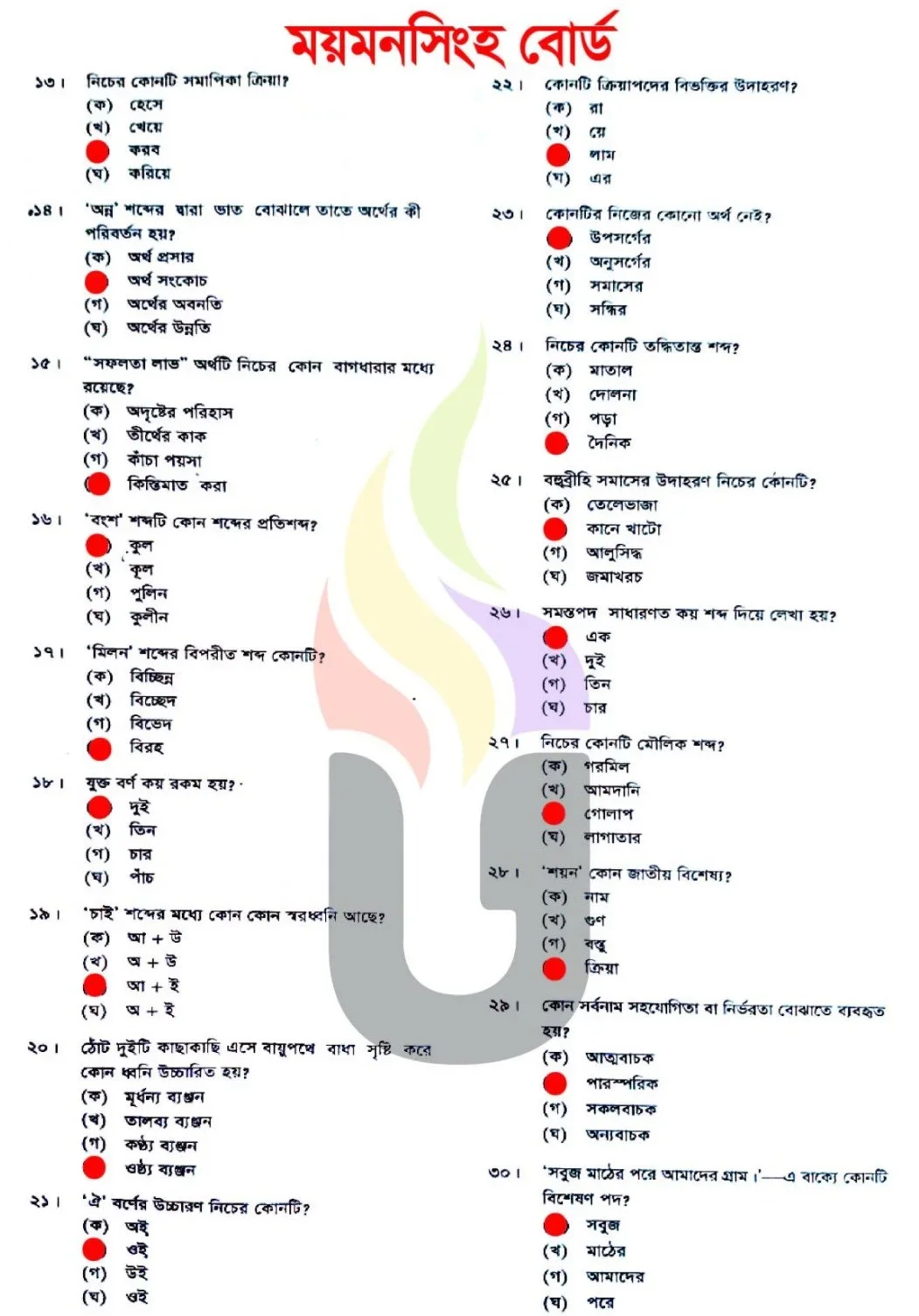 - ময়মনসিংহ বোর্ড এসএসসি বাংলা ২য় পত্র MCQ প্রশ্ন সমাধান ২০২৬
